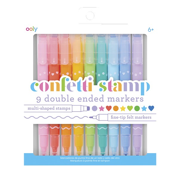 Set de 8 rotuladores grandes de tinta lavable y puta cónica, sello en su otro extremo de estrella, círculo y corazón. Su cuerpo grueso lo hace perfecto para las manos de los más pequeños.