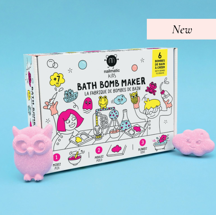 Con Bath Bomb Maker, puede crear hasta 6 bombas de baño para niños, en formas elegantes: bote, nube, extraterrestre, rana, búho o fantasma. ¿Como funciona? Fácil de burbujear: mezclar, agregar un poco de agua, volver a mezclar y moldear.