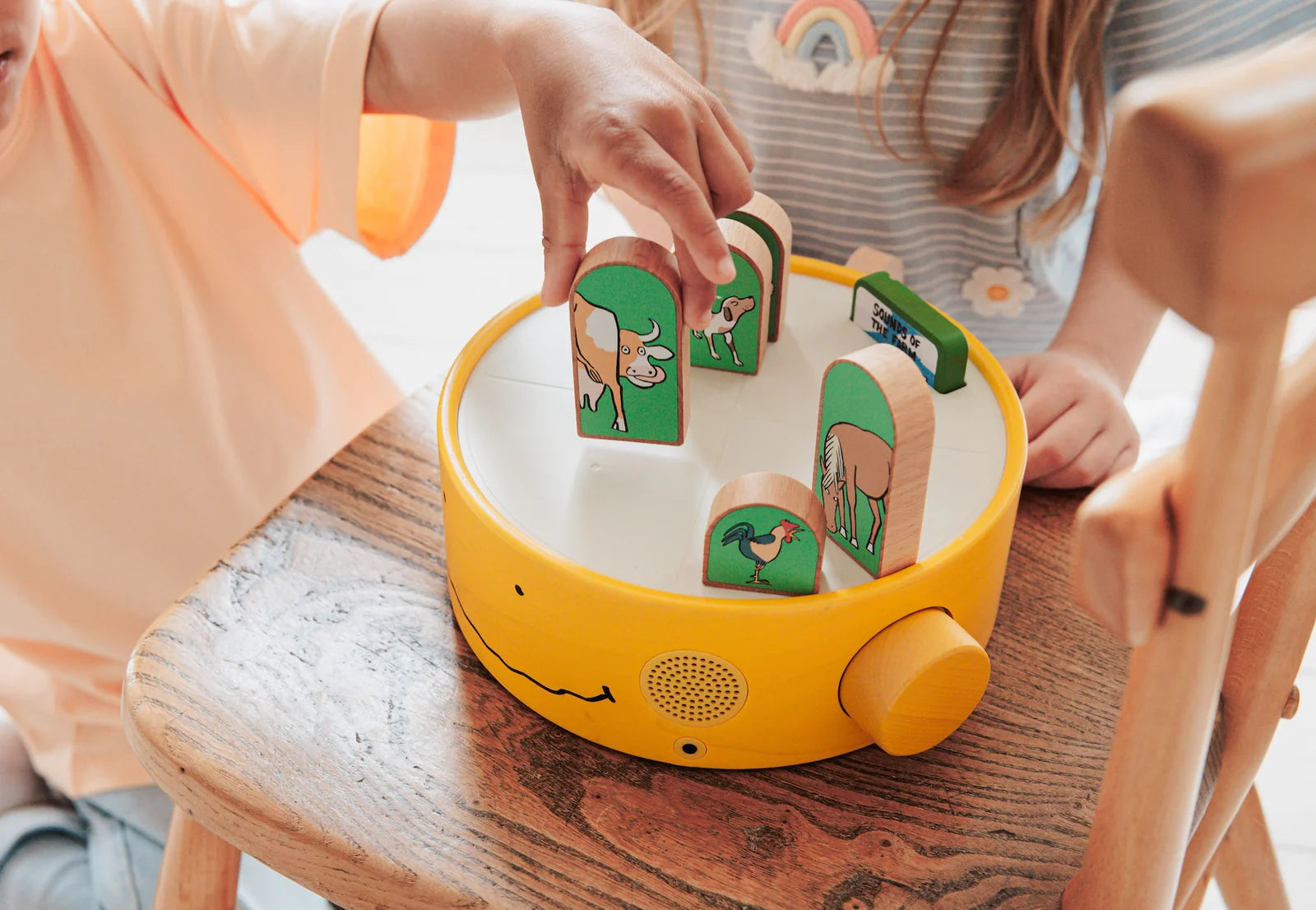 Dale vida a más sonidos en tu propia granja. Agrega el gracioso gruñido del cerdo y al perro juguetón al coro del corral.