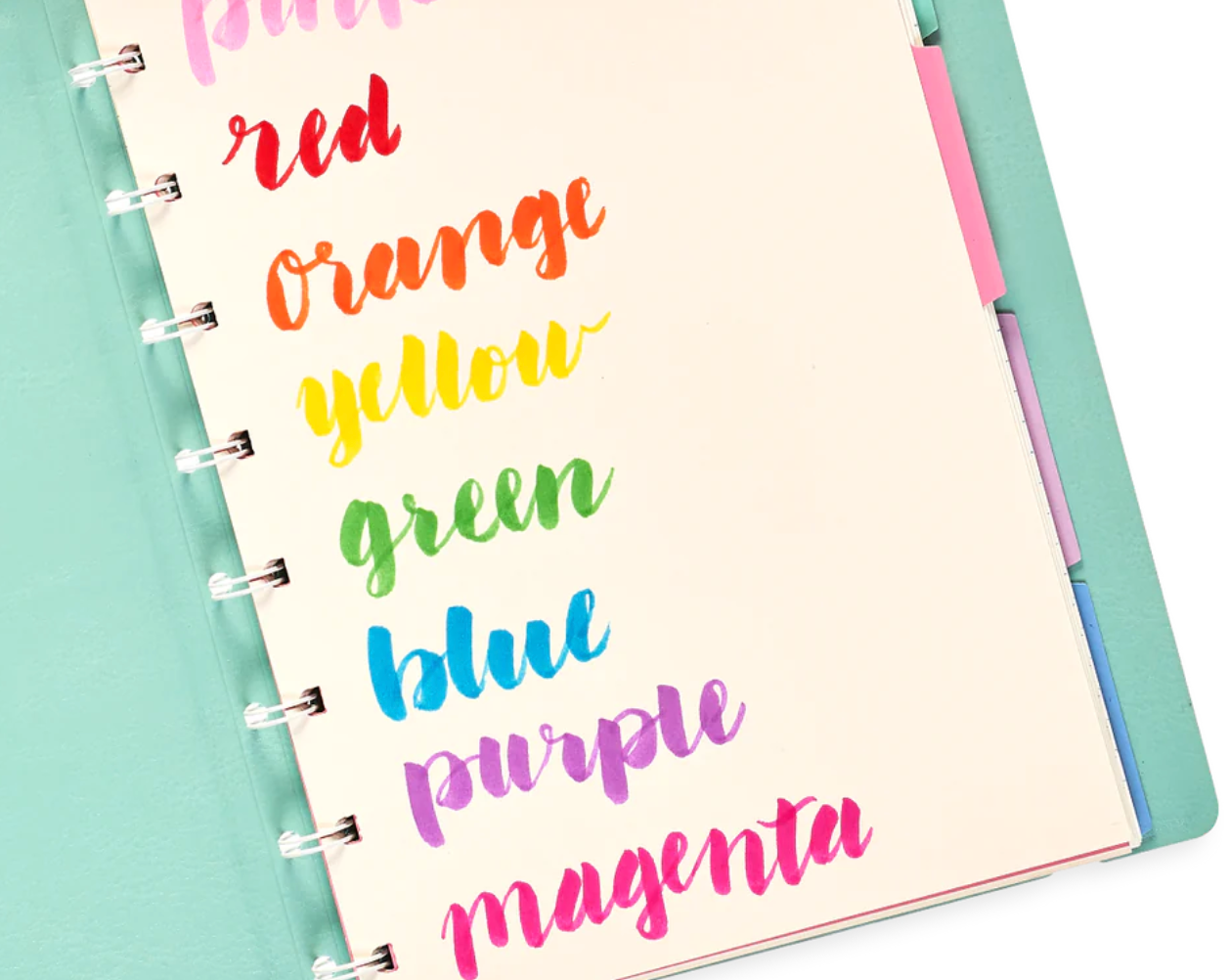 Set de 12 rotuladores con punta de pincel para dibujo y caligrafía. 12 intensos colores en un estuche reutilizable.