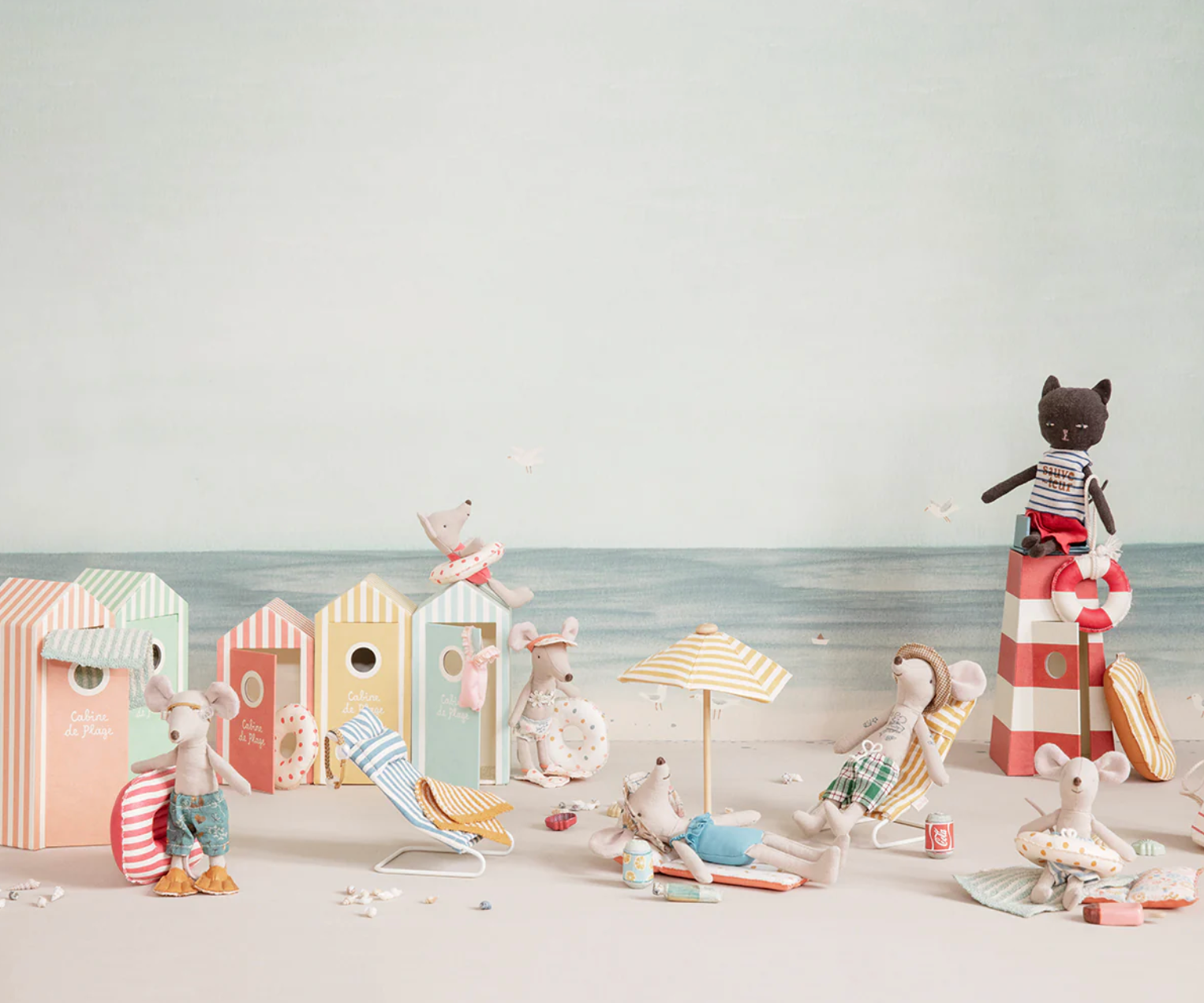 Tiempo de vacaciones. Un pequeño barco confeccionado en tejido revestido para un look auténtico. No es resistente al agua, por lo que sólo juega en suelo seco. Sólo en tu imaginación flota sobre el agua. Este juego se adapta a ratones de tamaño bebé, hermanita y hermano pequeño.