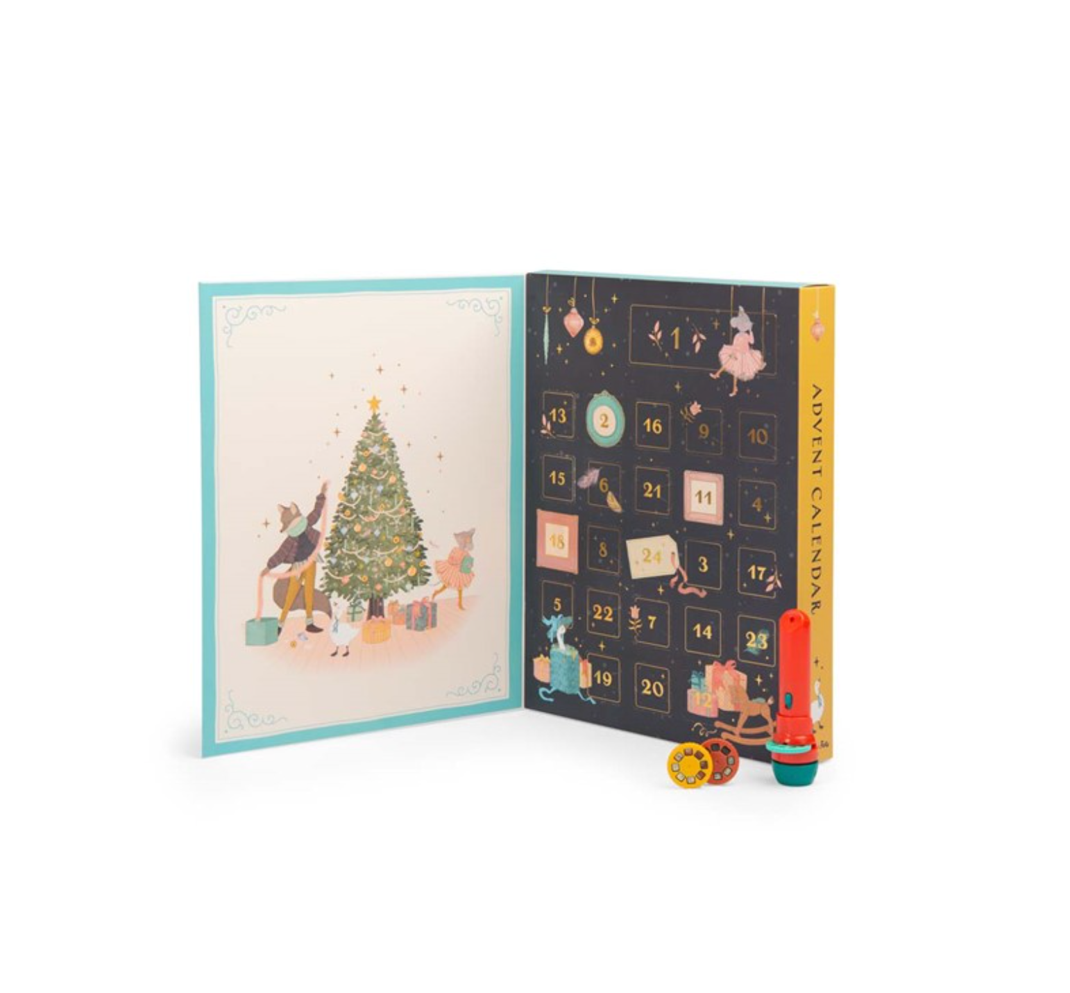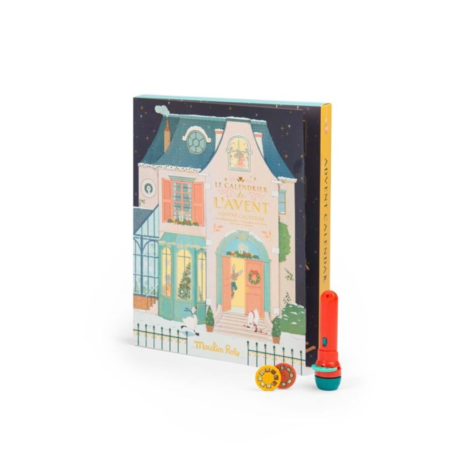 Contiene 1 Linterna de historias + 23 discos (1 para cada día del adviento) - Historias clásicas de Moulin Roty + 5 historias inéditas.