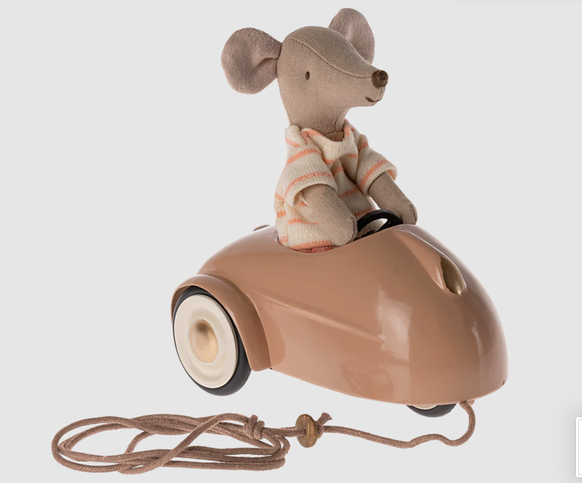 El coche metálico es el transporte perfecto para cualquier ratón. Encaja con todos los ratoncitos de la talla hermano/a menor y mayor y papá y mamá. Las cuerdas incluidas se pueden ajustar debajo del coche para que el niño tire del mismo