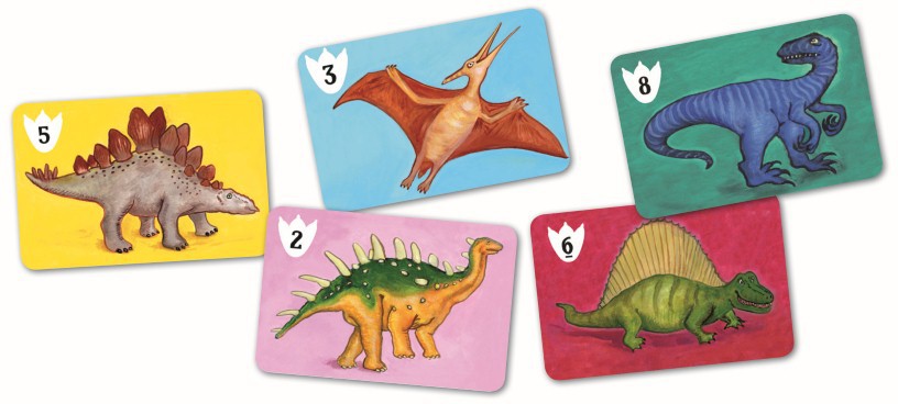 Cartas Batasaurus DESCRIPCIÓN -Un juego de memoria en forma de batalla. En lugar de tener las cartas en la mano, las cartas se colocan boca abajo sobre la mesa. ¡Solo se tienen unos segundos para memorizar su lugar antes de que arranque el combate de dinosaurios! 1, 2 y 3: cada jugador le da la vuelta a una de sus cartas y la carta más alta gana la baza. ¡Los jugadores pueden elegir qué carta usar y ganar la baza, pero para ello deben recordar el lugar que ocupan sus dinosaurios! ¡El jugador que haya ganado más cartas gana la partida! -Hay 12 cartas de dinosaurios para memorizar, con fuerzas numeradas del 1 al 12. -Un juego de batalla inédito que requiere ejercitar la memoria. -Ilustraciones para descubrir diferentes especies de dinosaurios. -Una caja compacta, que se puede llevar a todas partes. -Cartas de calidad y resistentes. Contenido: 48 cartas (4 juegos de 12 cartas de dinosaurios). Reglas del juego en 10 idiomas. Edad: A partir de 5 años Número de jugadores: De 2 a 4 jugadores Medidas producto: Medidas packaging: 8,5x11,7x2,8cm