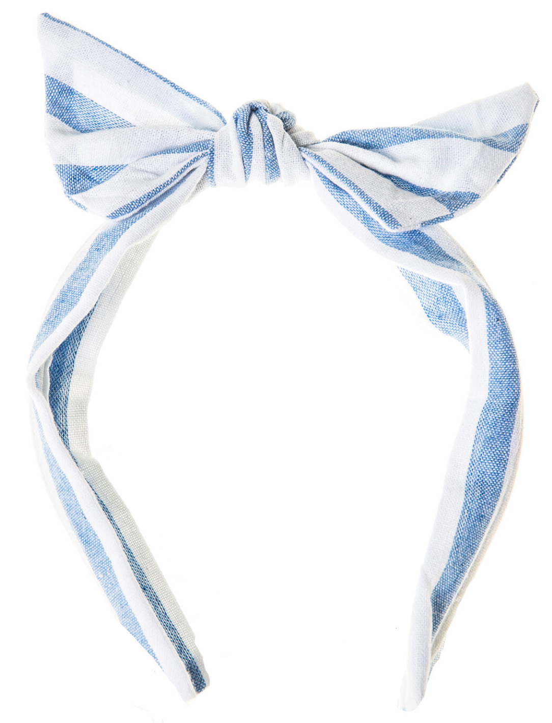 Confeccionada con nuestro hermoso tejido a rayas azules y blancas, esta banda para la cabeza tiene un dulce toque veraniego. Con un nudo superior atado a mano, está diseñado para brindar un ajuste cómodo para las cabezas pequeñas.