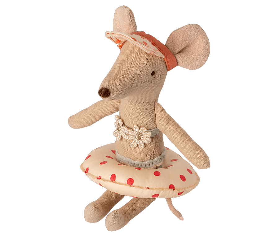 Tiempo de vacaciones. Una colchoneta recubierta de tela, no es impermeable, por lo que solo sirve para juegar en tierra seca. Solo en tu imaginación flota en el agua. Este set se adapta a ratones tamaño bebé y hermanos pequeños.