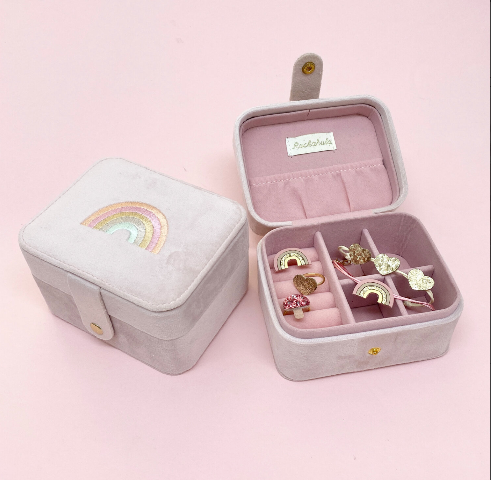 ¡Este bonito joyero de piel sintética es el lugar perfecto para guardar a salvo todas tus joyas de Rockahula y tus tesoros favoritos!