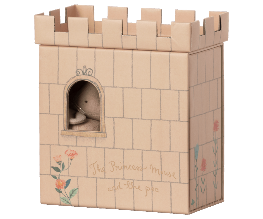 Este juego inspira la famosa princesa y el guisante de los cuentos de hadas. El conjunto incluye un castillo con colchones, un guisante y una princesa ratón.