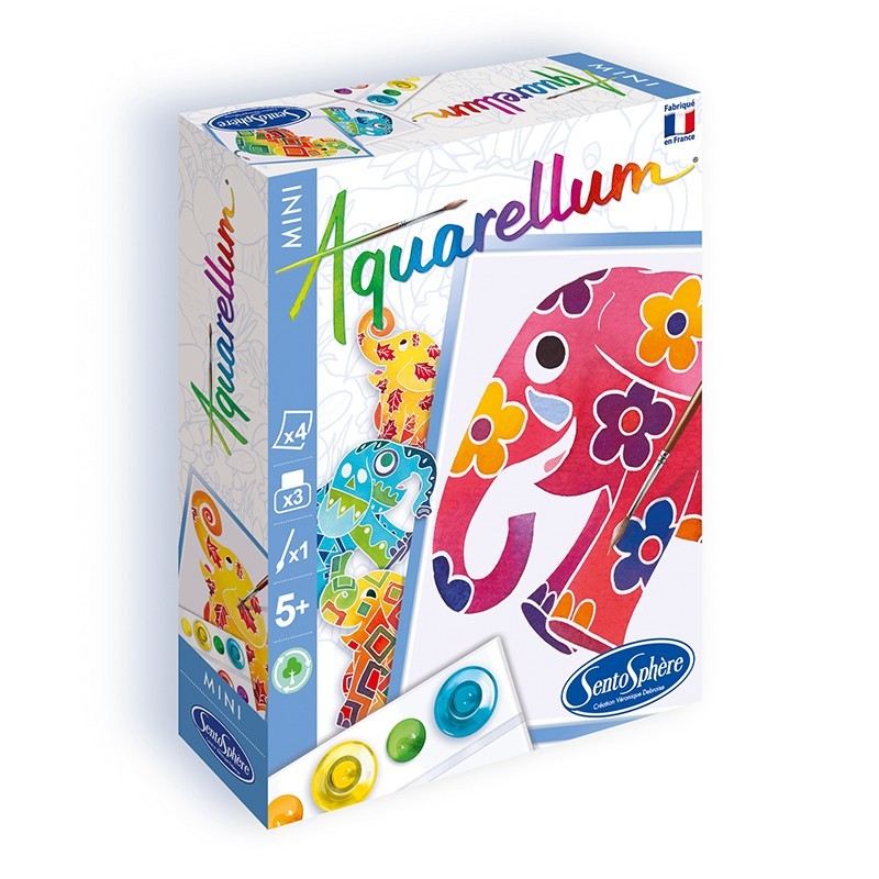 ¡Con este mini kit creativo, descubre el arte de la pintura a la acuarela añadiendo color a estos adorables elefantes, sin salirte de las líneas!
