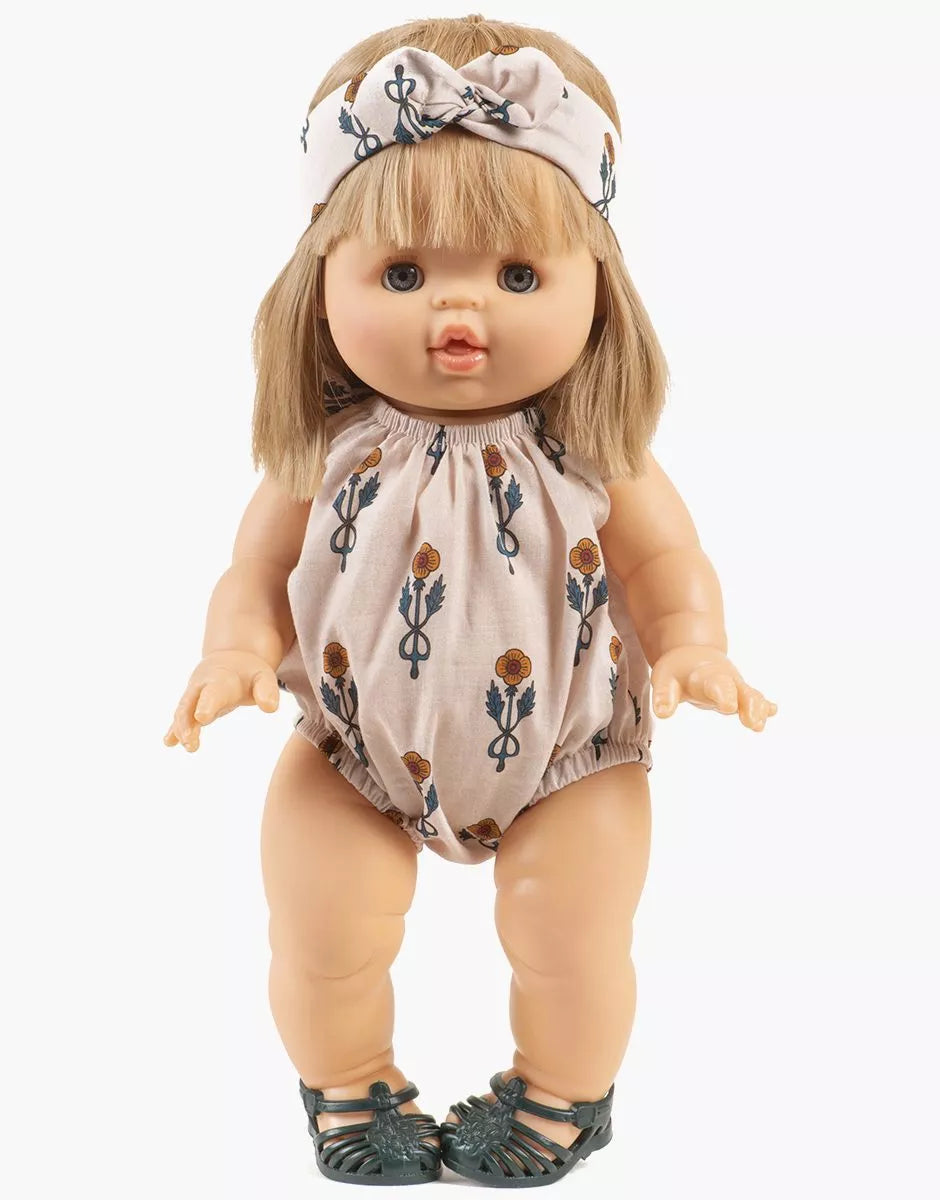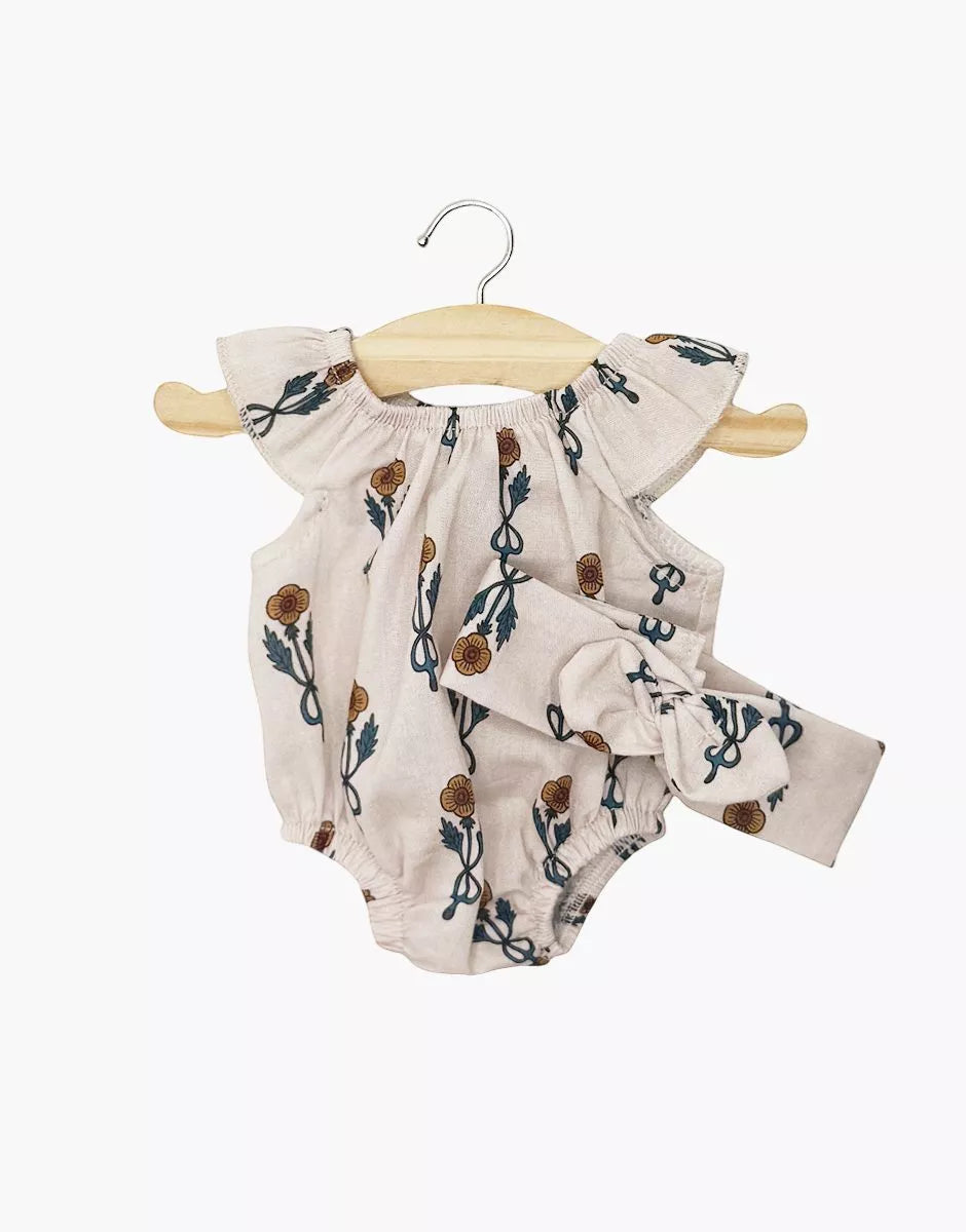 Mono Clara y diadema a juego en algodón con estampado floral nórdico.