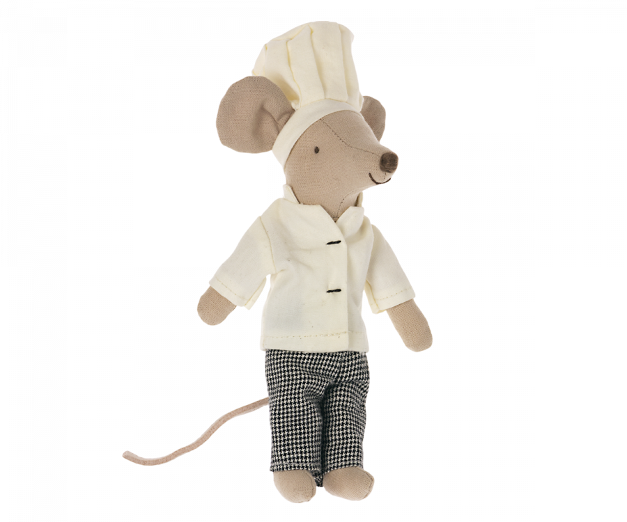 Prepara a tu hermana y hermano mayor ratoncito para cocinar durante horas con este amplio conjunto de ropa de chef.