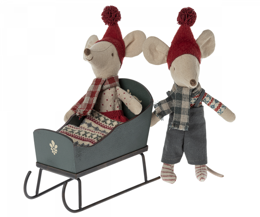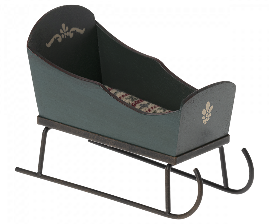 Un precioso trineo con un colchón suave para mantener a los pasajeros cálidos y cómodos durante el viaje. Este trineo se adapta perfectamente a los amigos y ratones más pequeños. Detalles pintados a mano, por lo que pueden ocurrir variaciones.